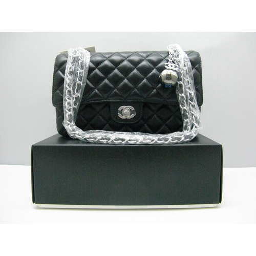 • Chanel lambskin leather Black Flap bag with Silver chain