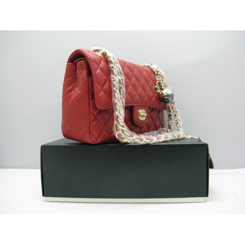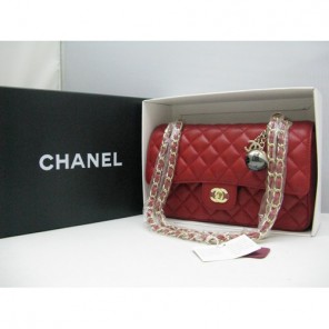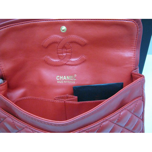 Chanel lambskin leather Red Flap bag with Gold chain