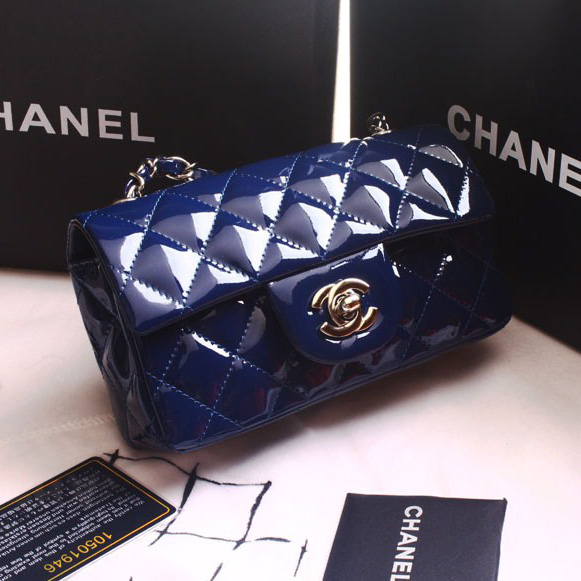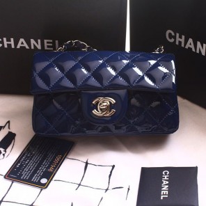 Chanel mini Classic Flap Bag Original Patent leather 1117 Royalblue in Silver
