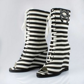 - open toe front,stripe and slipsole,long bootlace,logo beside