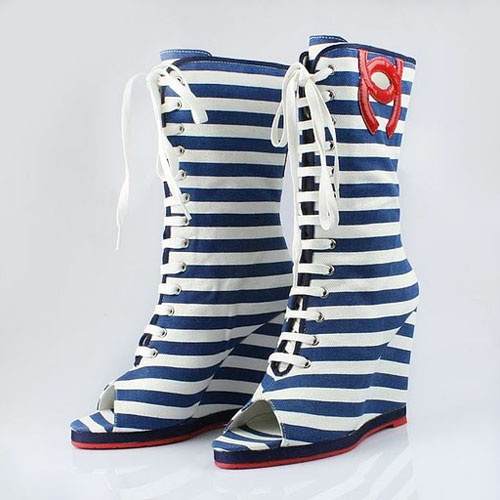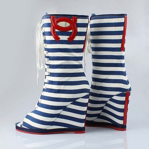 Chanel open toe stripe slipsole boots blue