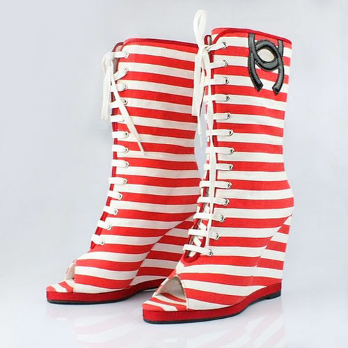 Chanel open toe stripe slipsole boots red