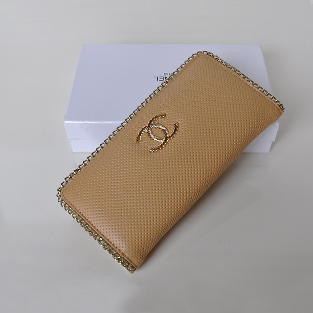 Hot Style Chanel CC Logo Long Zippy Wallet 0820 in Apricot