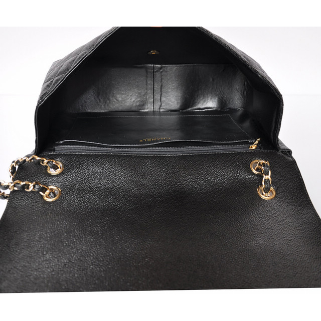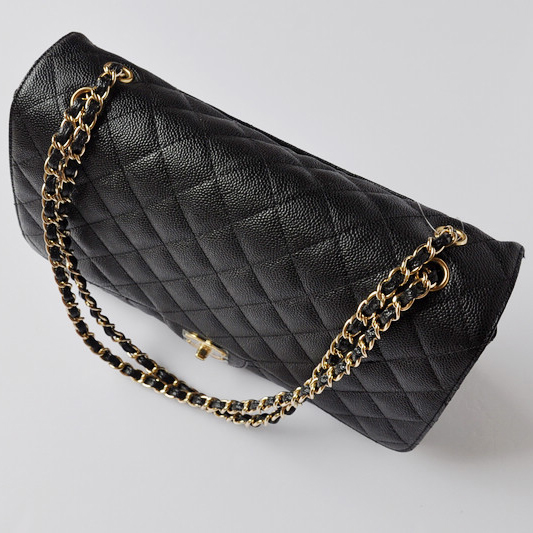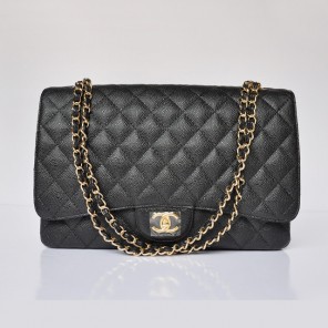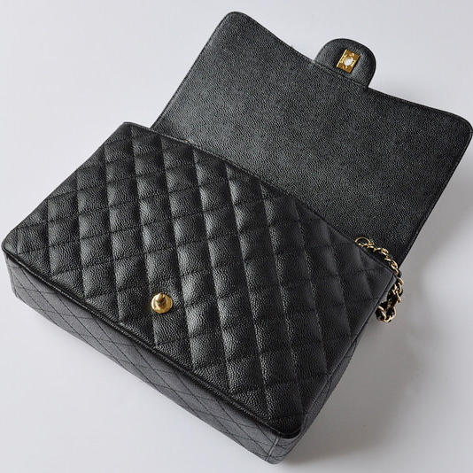 chanel A47600 Caviar Leather Jumbo Flap Bag in Black with Gold