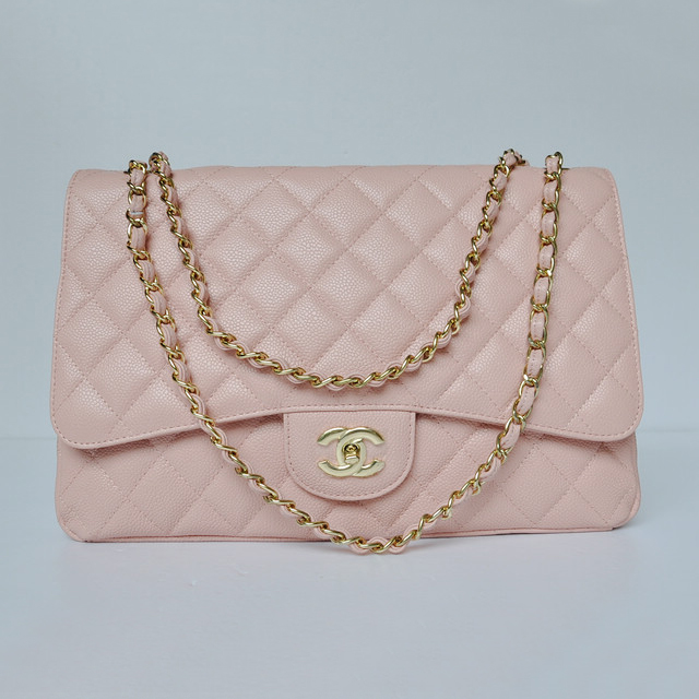 chanel A47600 Caviar Leather Jumbo Flap Bag in Pink with Gold