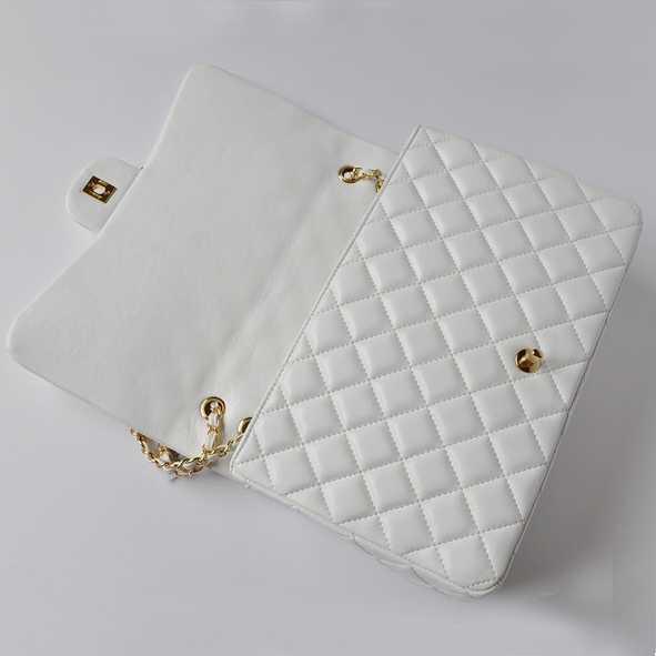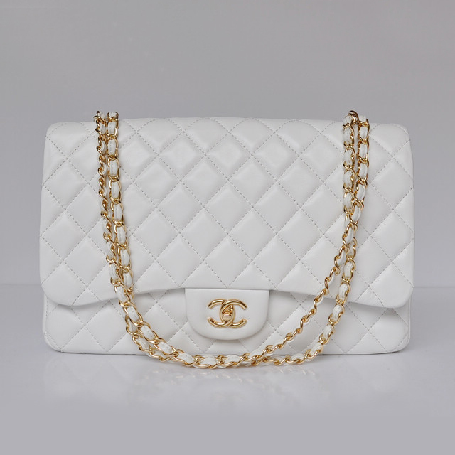 chanel A47600 Lambskin Leather Jumbo Flap Bag in White with Gold