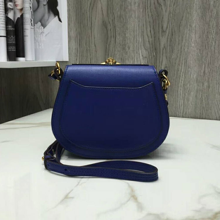 Crafted from smooth and suede calfskin, the bag features masculine details in the sleek top line and equestrian allure. The striking articulated bracelets bring a bold feminine twist to this compact day-to-evening bag. The Maison's distinctive saddle silhouette is contoured by a studded leather strip in continuity with the adjustable and removable leather strap.