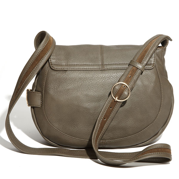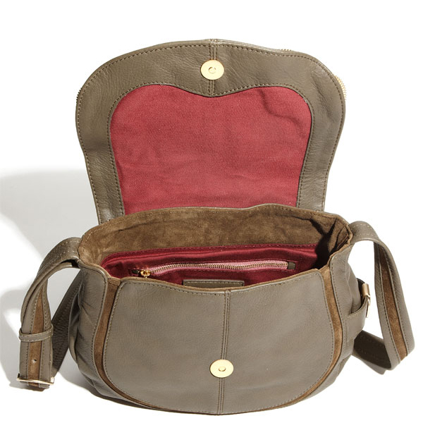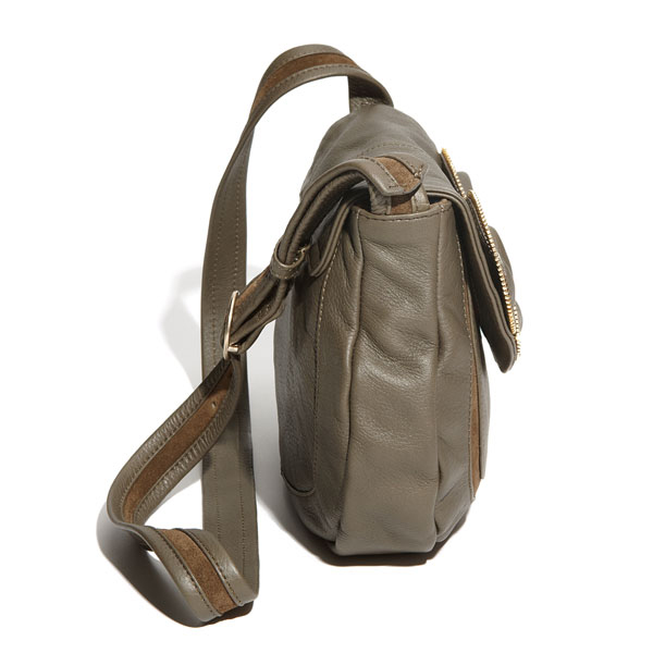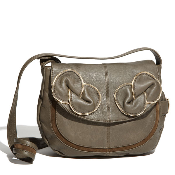 Infinity-knot embellishments modernized by zipper trim adorn a supple leather crossbody bag with sueded stripe detailing and logo-engraved hardware.