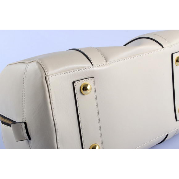 - Calf Leather - Polished Steel Hardware - hand or shoulder carry - Top Zip Closure - Inside zip pocket and Cellphone pocket