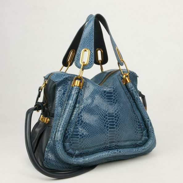 Chloe Paraty Shoulder Bags Snake Veins Leather Blue 29883 Size : W36 x H27 x D15cm (1" = 2.54CM)