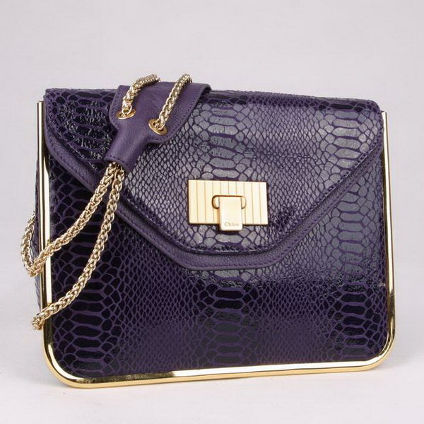 Chloe Sally Shoulder Bags Snake Veins Leather Purple 508914
