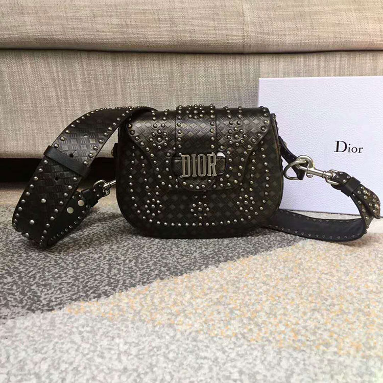 2018 Dior D-FENCE SADDLE BAG IN STUDDED CALFSKIN