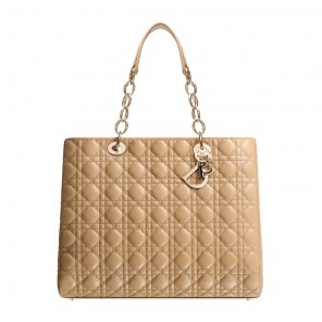 The practical, elegant and comfortable 'Dior Soft' collection is the epitome of Couture craftsmanship.With a shopping format, this beige lambskin bag is crafted with subtle 'Cannage' stitching.