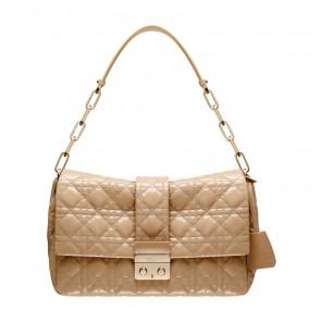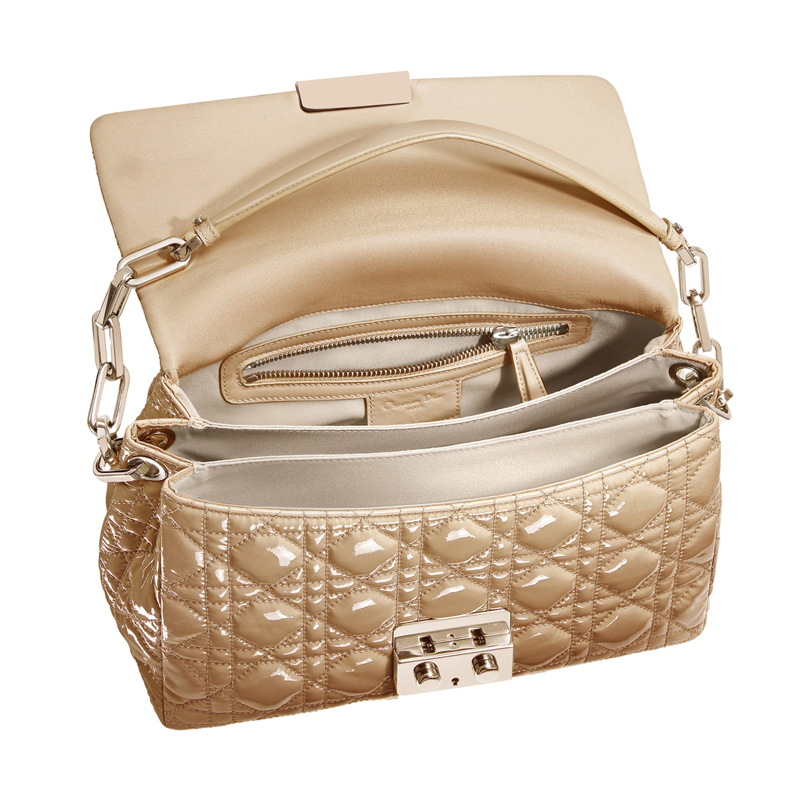 This range owes its name to the "New Look" devised by Christian Dior in 1947 and to its sophisticated and original clasp. This purple lambskin bag is distinguished by its Cannage stitching, its handle combining leather and a gold-tone metal chain and its double press-stud clasp in gold-tone metal, engraved with "Dior".