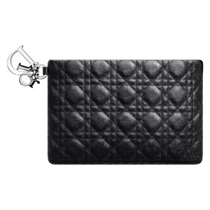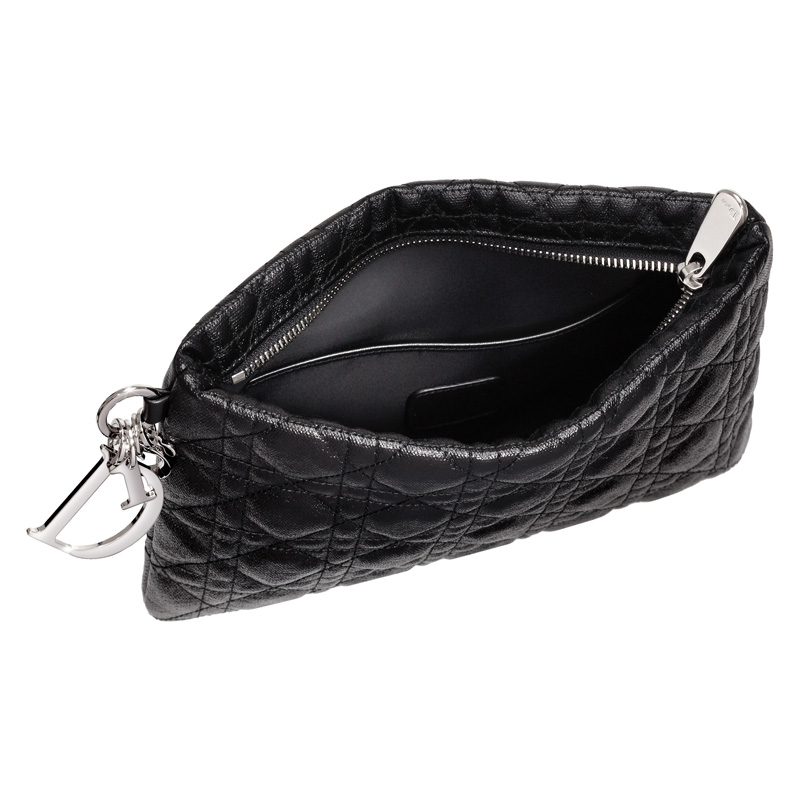 Reinterpreted in black coated canvas for extra lightness, this pouch is adorned with the 'Cannage' stitching emblematic of Dior