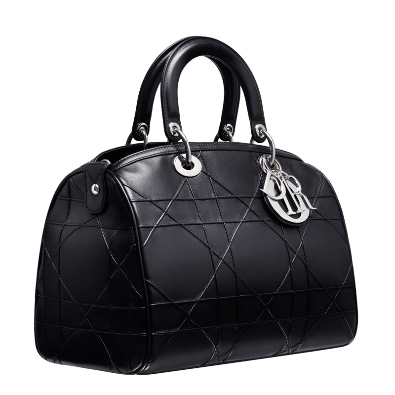 - This new black lambskin polochon bag, with its hand-stitched 'Cannage' embroidery, reflects Dior's craftsmanship.