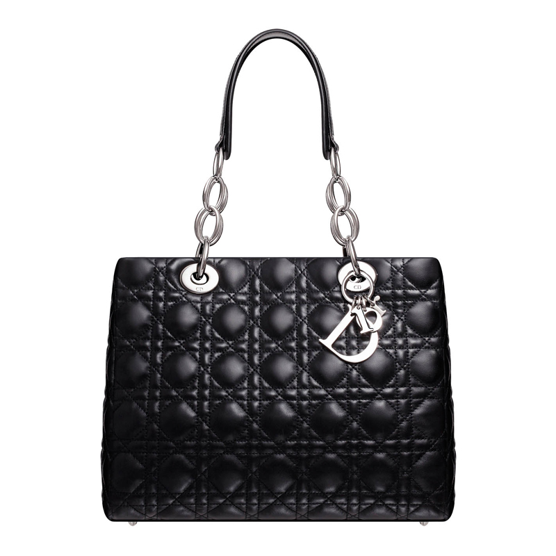 - This black quilted lambskin bag is adorned with 'Cannage' stitching that lends suppleness to the leather. Its handles that intertwine leather and silver-tone chains allow it to be worn on the shoulder.