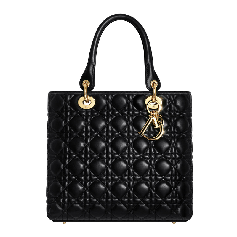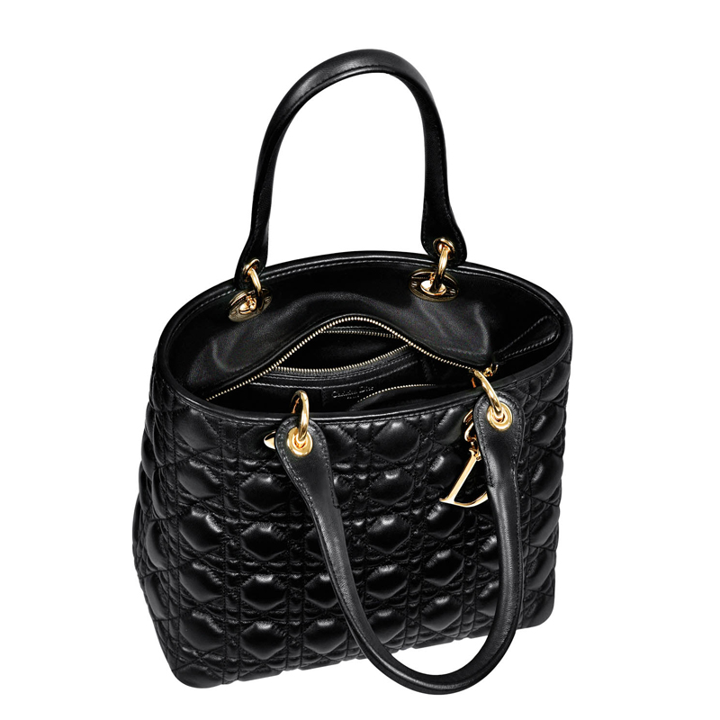 - This zipped bag in soft black lambskin is adorned with 'Cannage' stitching.