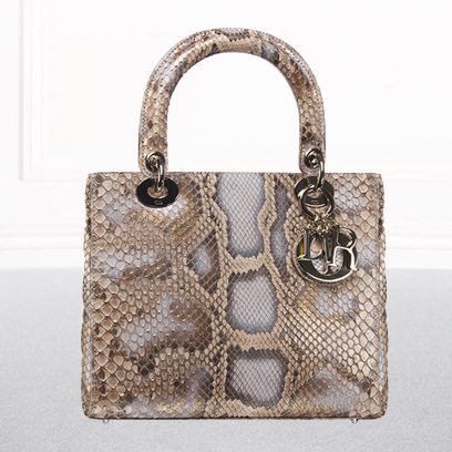 - A timeless and unique work of art, the 'Lady Dior' bag is imbued with the Couture spirit of Dior. This exotic, sophisticated Bronze pearlised python bag is distinguished by its quality, modernity and originality.