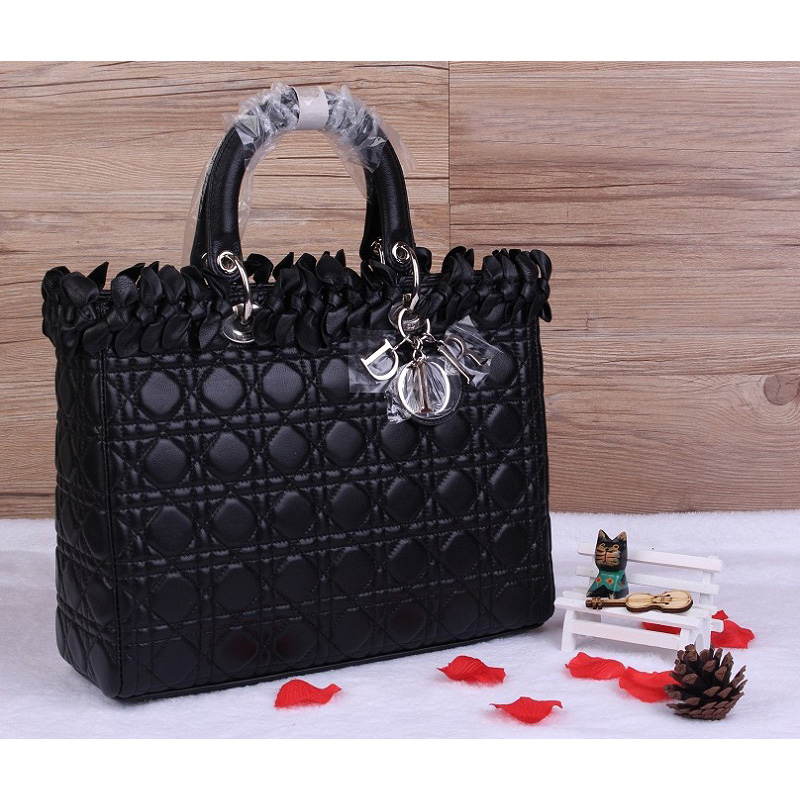 Christian Lady Dior Bag Medium Bag Sheepskin Leather D1667 Black