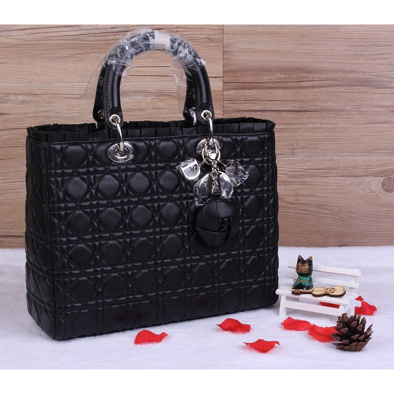 Christian Lady Dior Bag Medium Bag Sheepskin Leather D1667 Black