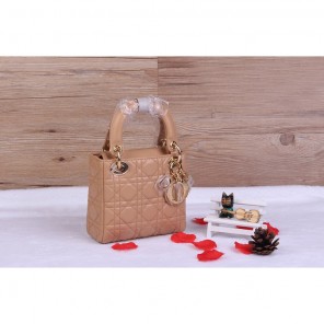 Christian Lady Dior Bag Sheepskin Leather D1633 Apricot with Gold