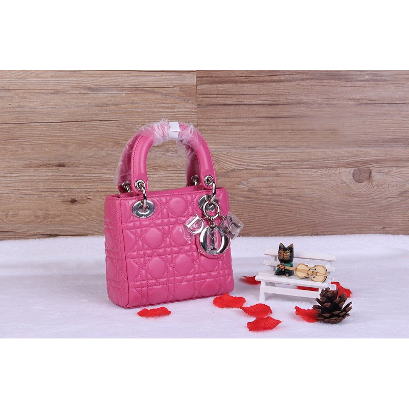 Christian Lady Dior Bag Sheepskin Leather D1633 Peach with Silver