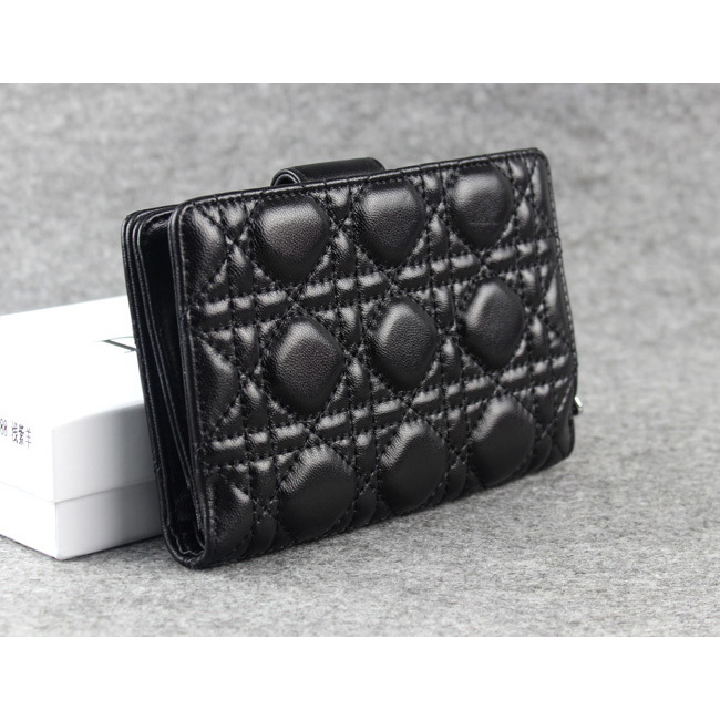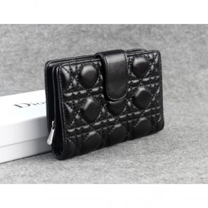 Dior Bi-Fold Wallet Sheepskin Leather DS023 Black