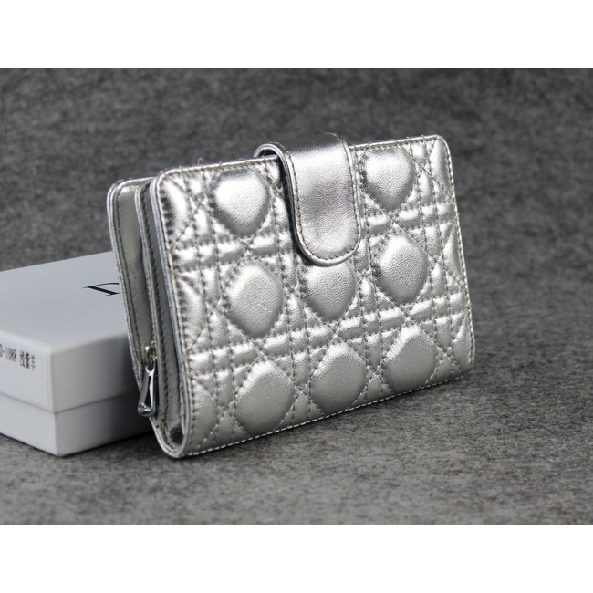 Dior Bi-Fold Wallet Sheepskin Leather DS023 Silver