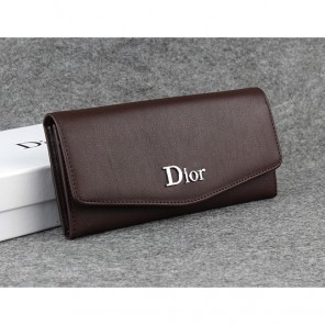 Dior Cowhide Leather Long Leather Wallet 1056 Coffee