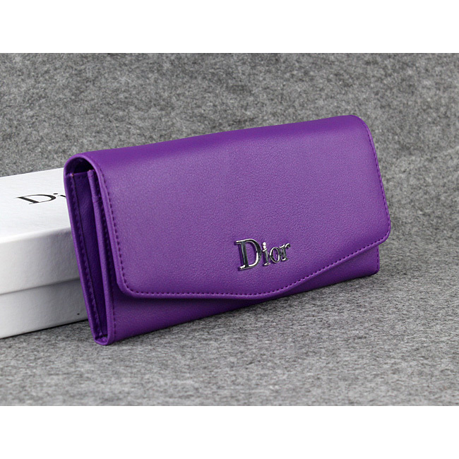 Dior Cowhide Leather Long Leather Wallet 1056 Purple