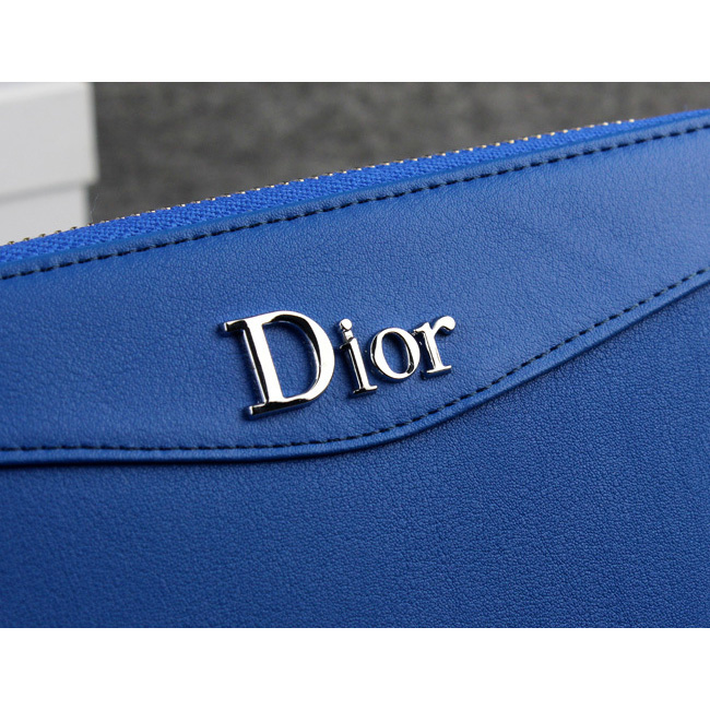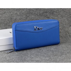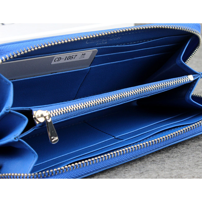 Dior Cowhide Leather Long Leather Wallet 1057 Blue