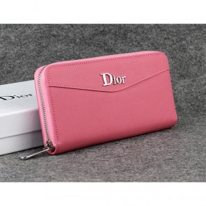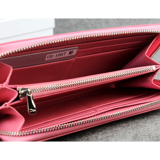 Dior Cowhide Leather Long Leather Wallet 1057 Pink