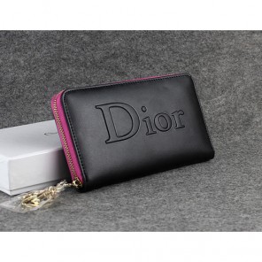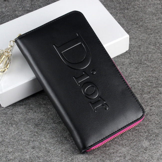 Dior Cowhide Leather Long Leather Wallet with Embossed 1098 Black