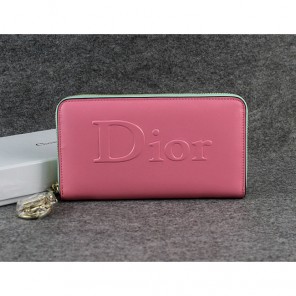 Dior Cowhide Leather Long Leather Wallet with Embossed 1098 Pink