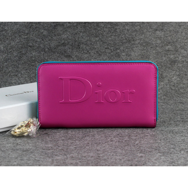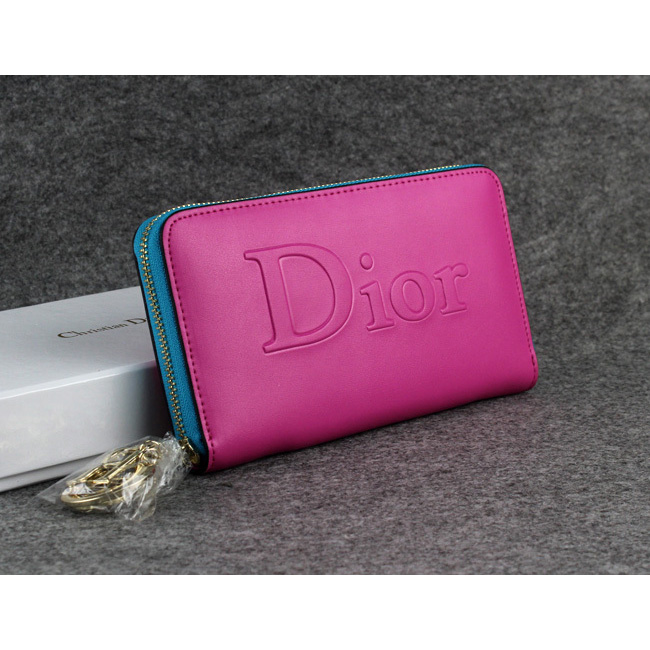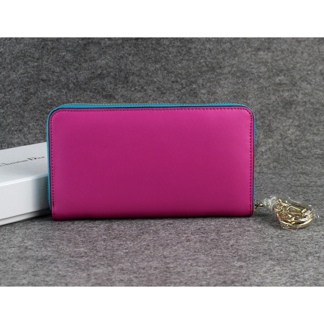 Dior Cowhide Leather Long Leather Wallet with Embossed 1098 Rose