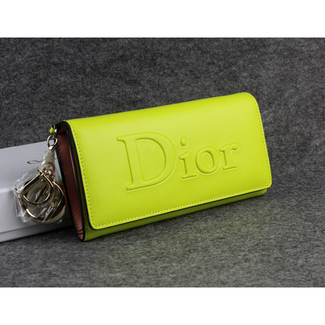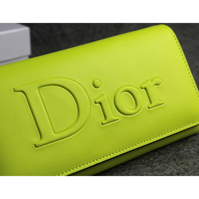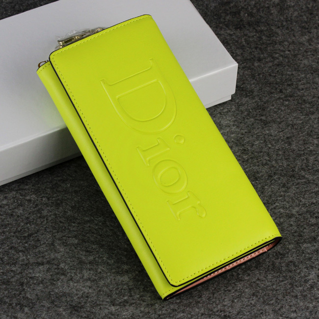 Dior Cowhide Leather Long Leather Wallet with Embossed 5192 Lemon