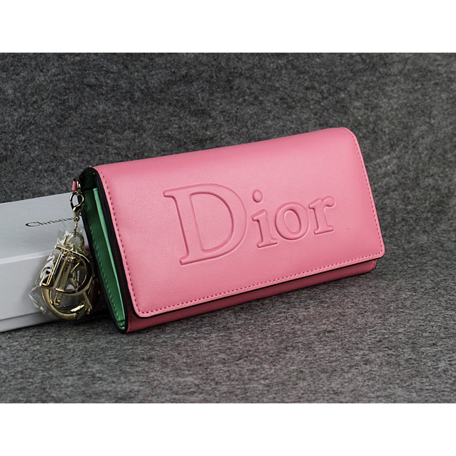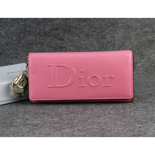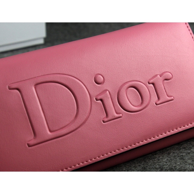 Dior Cowhide Leather Long Leather Wallet with Embossed 5192 Pink