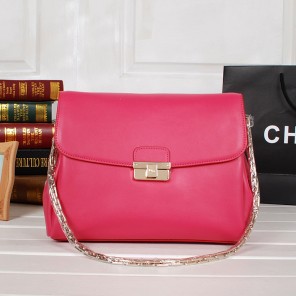 the softness of finely grained calfskin,the bold magnetic clasp and the feminine chain exude a casual chic style.