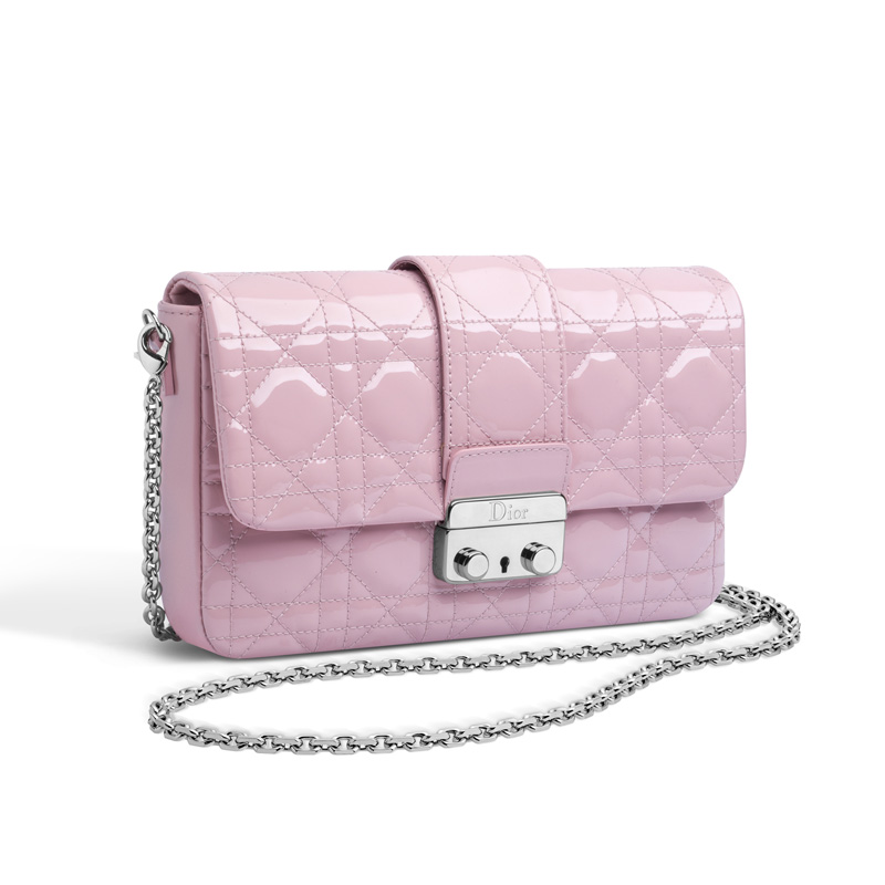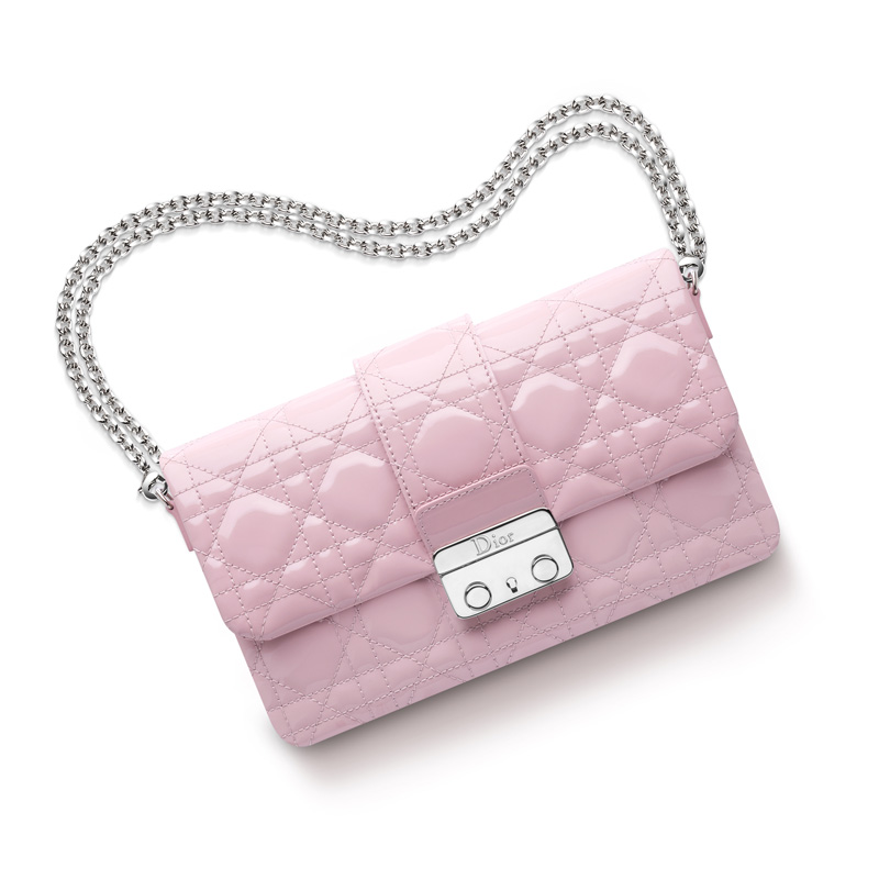 This line owes its name to the "New Look" devised by Christian Dior in 1947 as well as to the sophisticated and original clasp. This large "Promenade" pouch in light pink patent lambskin is both modern and feminine.
