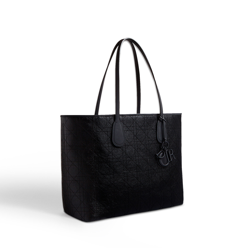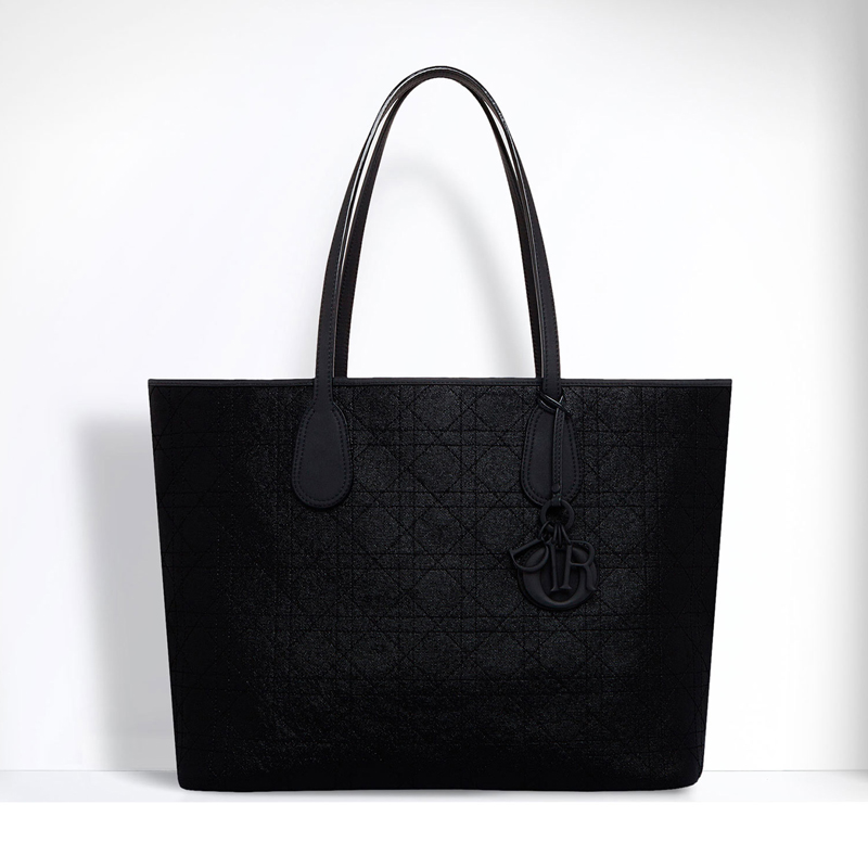 Lightweight and modern, the "Dior Panarea" collection reflects Dior's dynamic styling. This shopping bag in black canvas adds a new twist to the iconic Dior "Cannage" stitching. The rounded handles mean it can be carried on the shoulder in a practical style for any occasion. It is accessorised with matching charms for an energetic look.