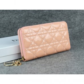 Dior Patent Leather Long Leather Wallet 1098 Apricot