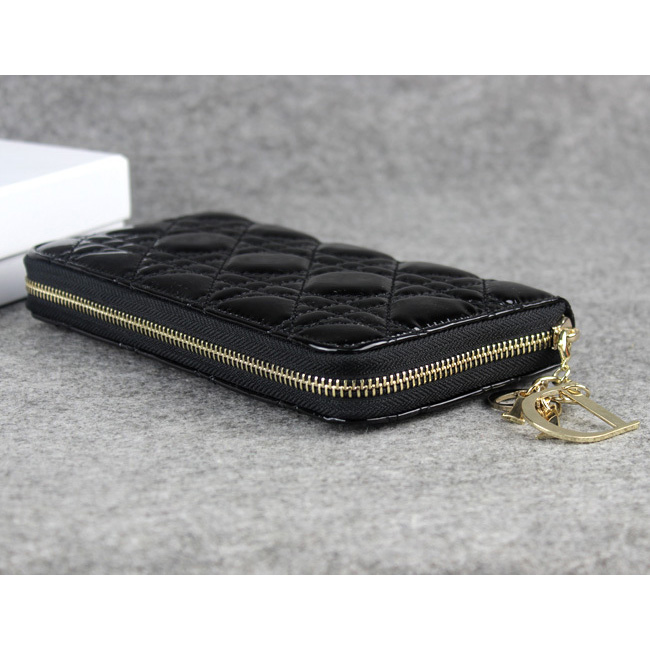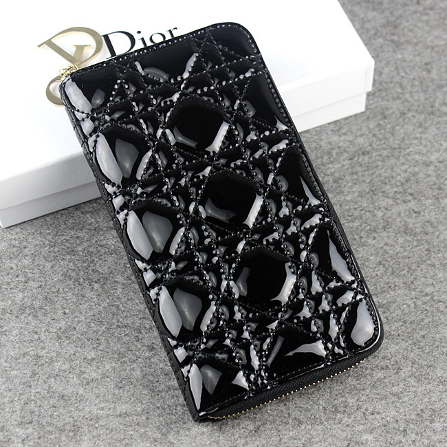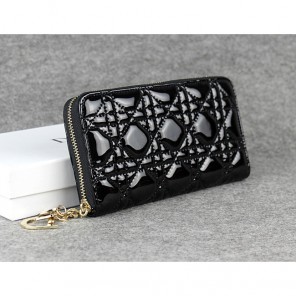 Dior Patent Leather Long Leather Wallet 1098 Black