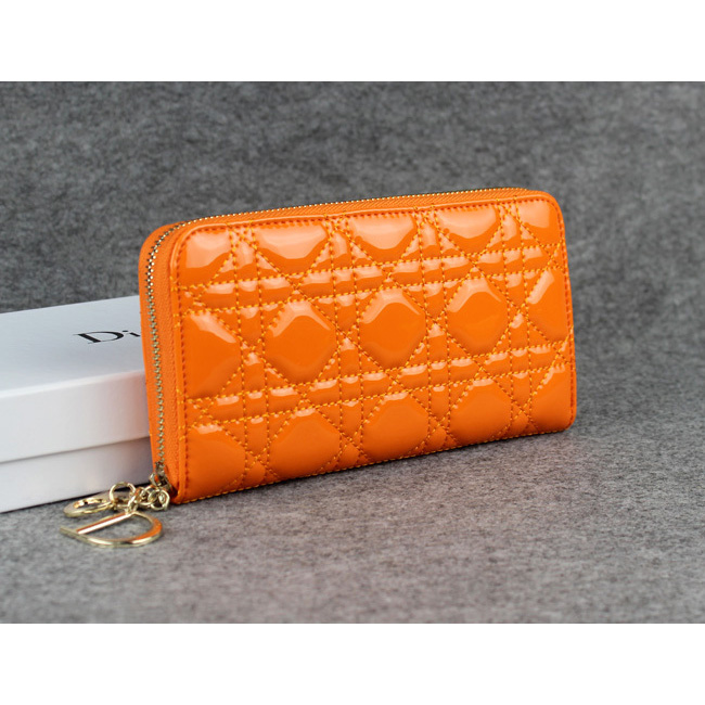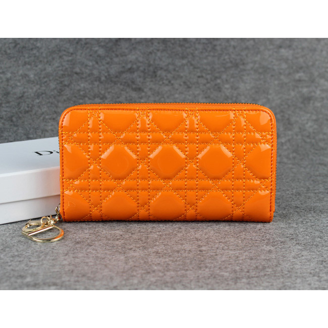 Dior Patent Leather Long Leather Wallet 1098 Orange