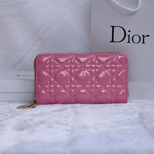 Dior Patent Leather Long Leather Wallet 1098 Pink