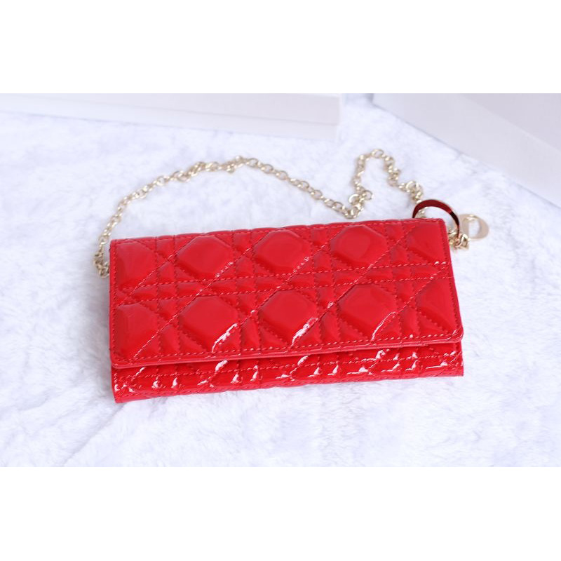 Dior Patent Leather Long Leather Wallet with chain 1078 Red
