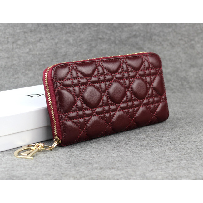 Dior Sheepskin Leather Long Leather Wallet 1098 Burgundy