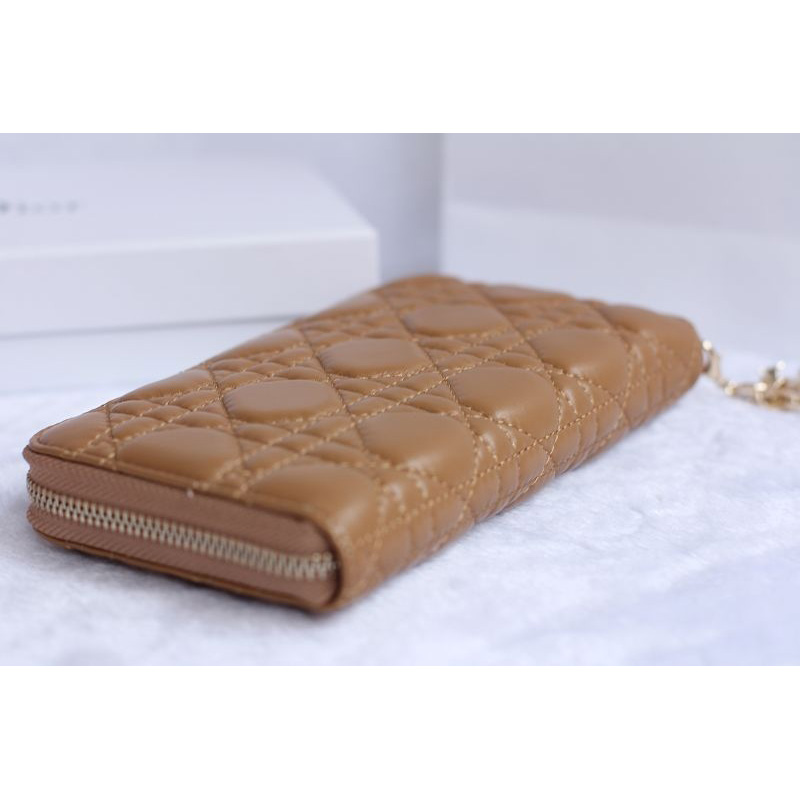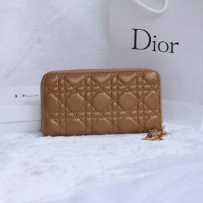 Dior Sheepskin Leather Long Leather Wallet 1098 DarkApricot