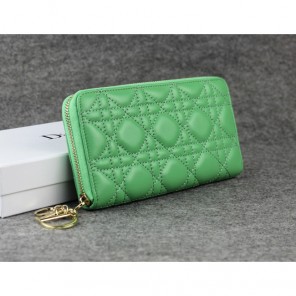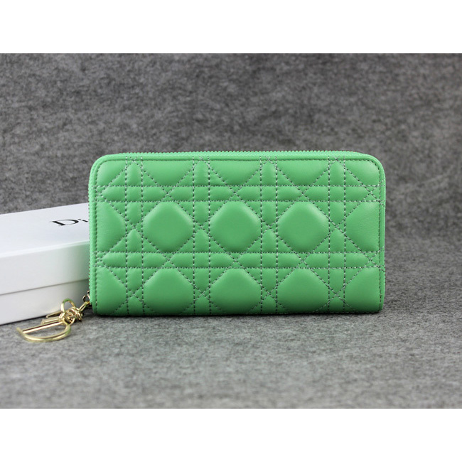 Dior Sheepskin Leather Long Leather Wallet 1098 Green