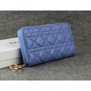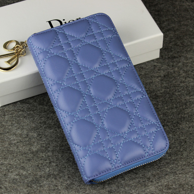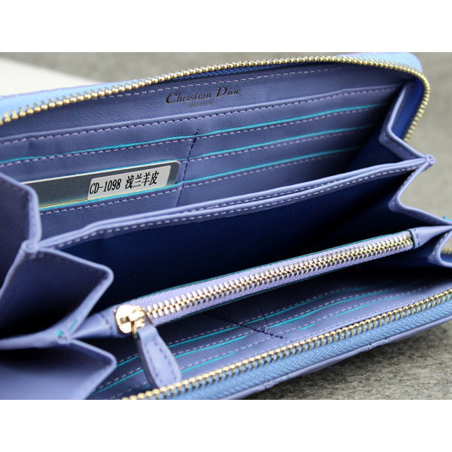 Dior Sheepskin Leather Long Leather Wallet 1098 Lightblue